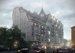 Новый дом располагается в недалеко от Каменноостровского проспекта. Дизайн постройки выполнен в стиле модерн. Фасад комплекса украшен множеством декоративных элементов и имеет уникальный дизайн. Ещё одна особенность дома - витражное остекление и литые ограждение балконов. Отдельного внимания заслуживает готическая башенка с флюгером, расположенная на крыше дома.