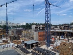 В третьем корпусе завершен монтаж стен в секциях под номерами 7 и 10. Еще в четырех секциях обустраивается подземный уровень. Рядом с корпусом установлен четвертый строительный кран.