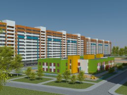 В состав жилого комплекса «Яркий» входят шесть монолитных домов высотой 12 этажей каждый. Квартиры здесь отвечают требованиям эконом-класса и представляют собой жилье небольшой площади. |